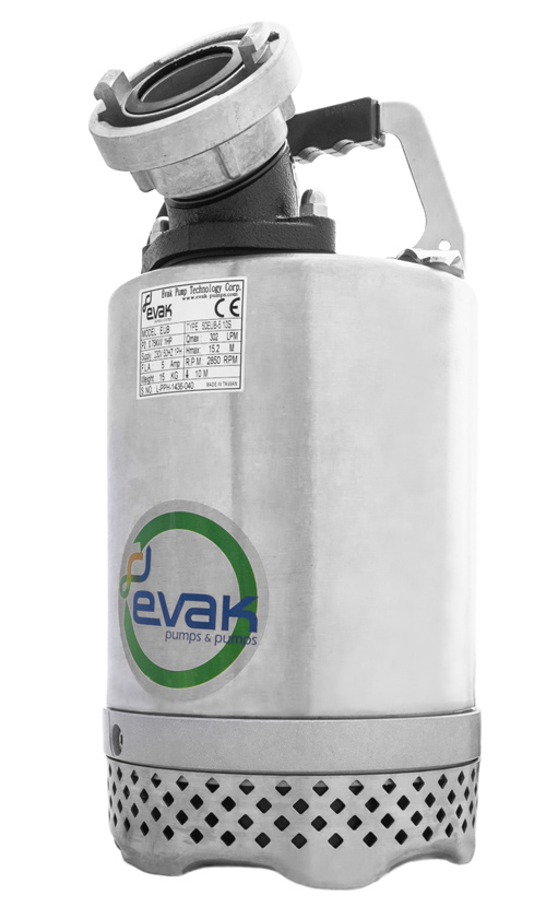 Pompy szlamowe z wylotem bocznym, wyposażone w płaszcz chłodzących. Idealne do pompowanie szlamu oraz ścieków. Wirnik oraz część hydrauliczna wykonane są poliuretany HYTREL (tak jak w pompach EVAK EUS), który w tym przypadku odlany jest w metalowym rdzeniu. Dzięki takiemu rozwiązaniu, pompy charakteryzują się wysokim poziomem odporności na ścieranie.